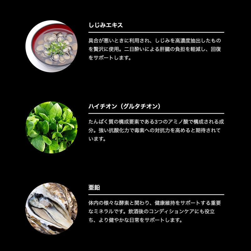ぬまぬま お酒が弱すぎて3日酔いまでするくらいな割にお酒が好きで、今までどんな対策をしても翌日はパフォーマンスが激下がりしていました。今まで二日酔い対策に一日1000円前後かけていましたが、これひとつで復活がかなり早くなりました、、!体感として医薬部外品よりも効果が高いと思いましたので、手放せなくなりそうです!